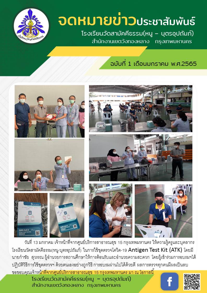 เจ้าหน้าที่จากศูนย์บริการสาธารณสุข 15 กรุงเทพมหานคร ให้ความรู้ครูและบุคลากรโรงเรียนวัดสามัคคีธรรม(หนู-บุตรอุปถัมภ์) ในการใช้ชุดตรวจโควิด-19 Antigen Test Kit (ATK) โดยมีนายกำชัย สุวรรณ ผู้อำนวยการสถานศึกษาให้การต้อนรับและอำนวยความสะดวก โดยผู้เข้าร่วมการอบรมฯได้ปฏิบัติวิธีการใช้ชุดตรวจฯ ด้วยตนเองอย่างถูกวิธี การอบรมผ่านไปได้ด้วยดี ผลการตรวจทุกคนมีผลเป็นลบ