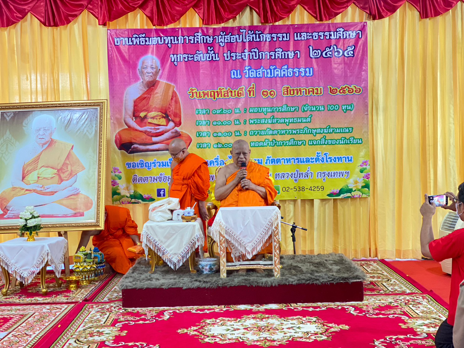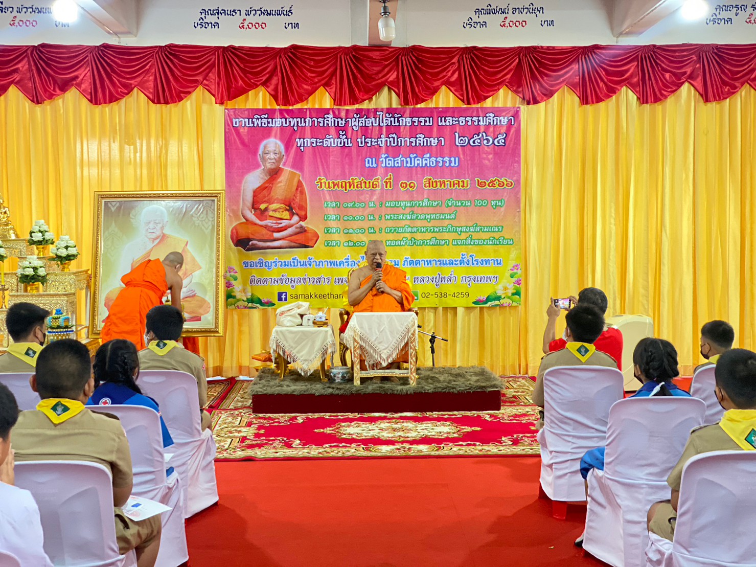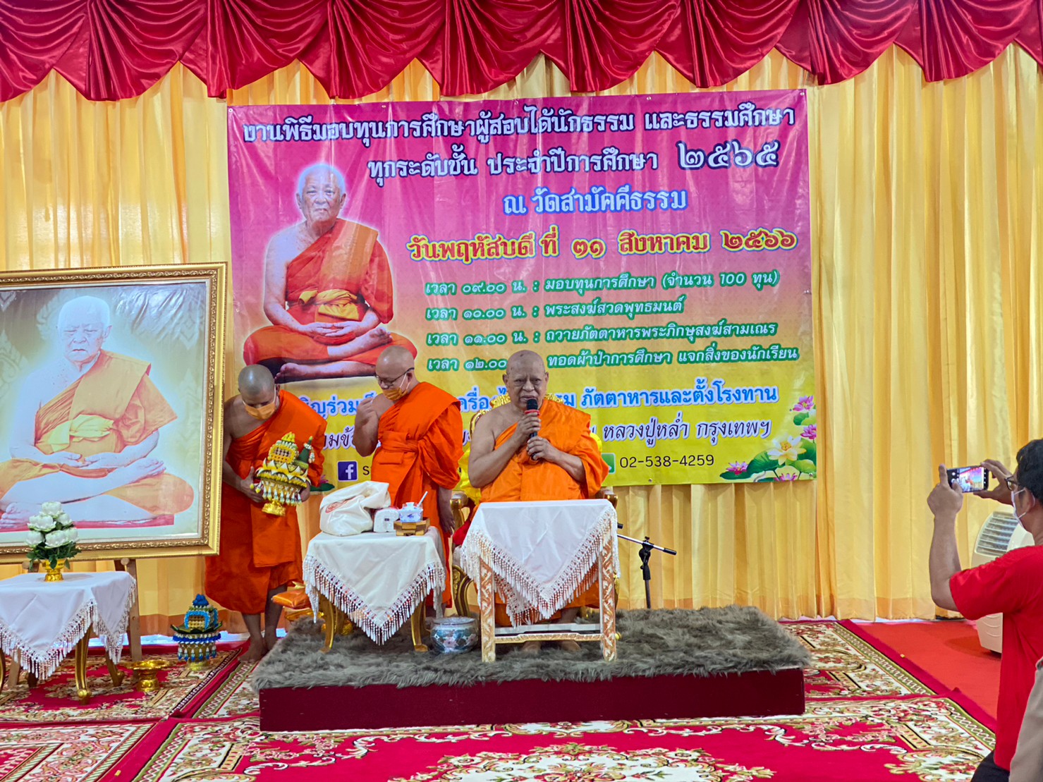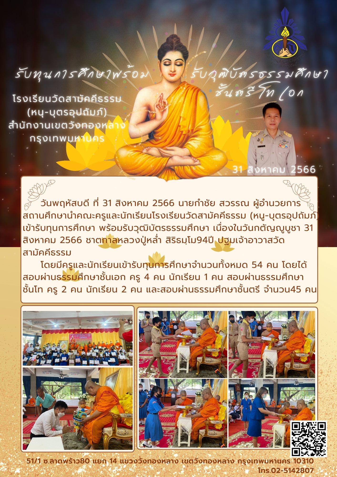 วันพฤหัสบดี ที่ 31 สิงหาคม 2566 นายกำชัย สวรรณ ผู้อำนวยการสถานศึกษานำคณะครูและนักเรียนโรงเรียนวัดสามัคคีธรรม (หนู-บุตรอุปถัมภ์) เข้ารับทุนการศึกษา พร้อมรับวุฒิบัตรธรรมศึกษา เนื่องในวันกตัญญูบูชา 31 สิงหาคม 2566 ชาตกาลหลวงปู่หล่ำ สิริธมฺโม94ปี ปฐมเจ้าอาวาสวัดสามัคคีธรรม โดยมีครูและนักเรียนเข้ารับทุนการศึกษาจำนวนทั้งหมด 54 คน โดยได้สอบผ่านธรรมศึกษาชั้นเอก ครู 4 คน นักเรียน 1 คน สอบผ่านธรรมศึกษา ชั้นโท ครู 2 คน นักเรียน 2 คน และสอบผ่านธรรมศึกษาชั้นตรี จำนวน45 คน By Mayula Kongdee1 กันยายน 2023ไม่มีหมวดหมู่Leave a Comment on 31 สิงหาคม 2566
