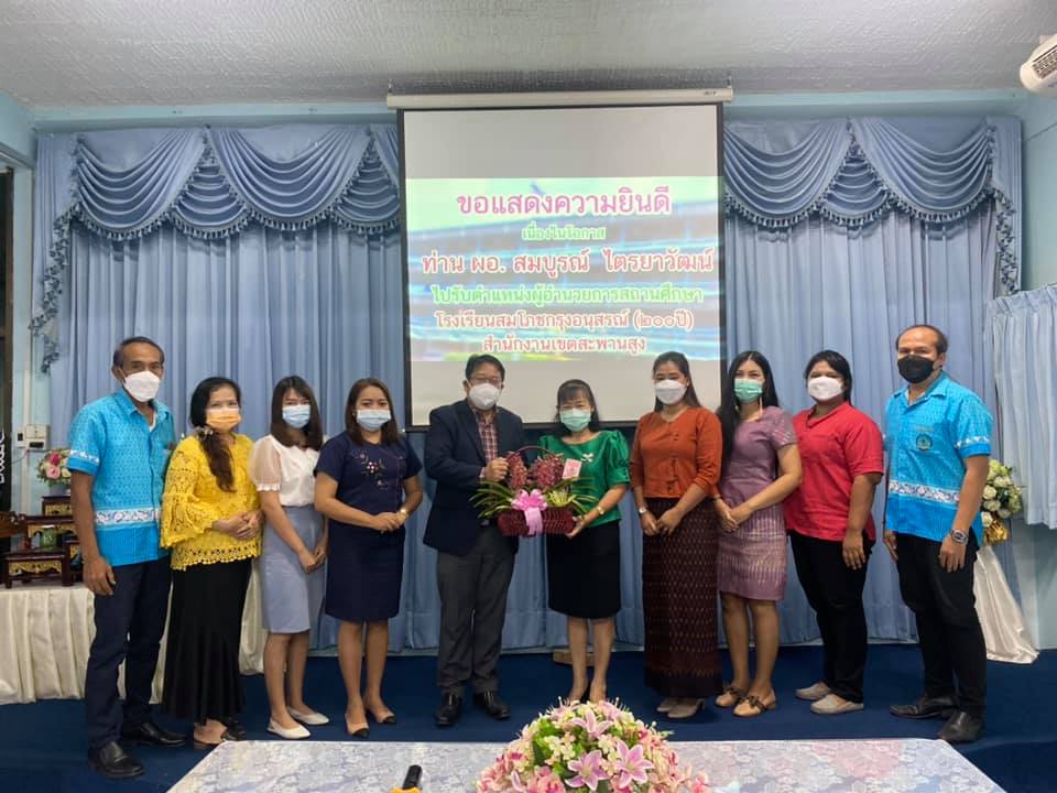 ผู้อำนวยการ กศน.วังทองหลาง คณะครูและบุคลากร ประธานคณะกรรมการสถานศึกษา ครูและบุคลากรโรงเรียนวัดสามัคคีธรรม ร่วมแสดงความยินดีกับ นางสาวสมบูรณ์ ไตรยาวัฒน์ ที่ย้ายไปดำรงตำแหน่งผู้อำนวยการสถานศึกษา โรงเรียนสมโภชน์กรุงอนุสรณ์(200ปี)สำนักงานเขตสะพานสูง